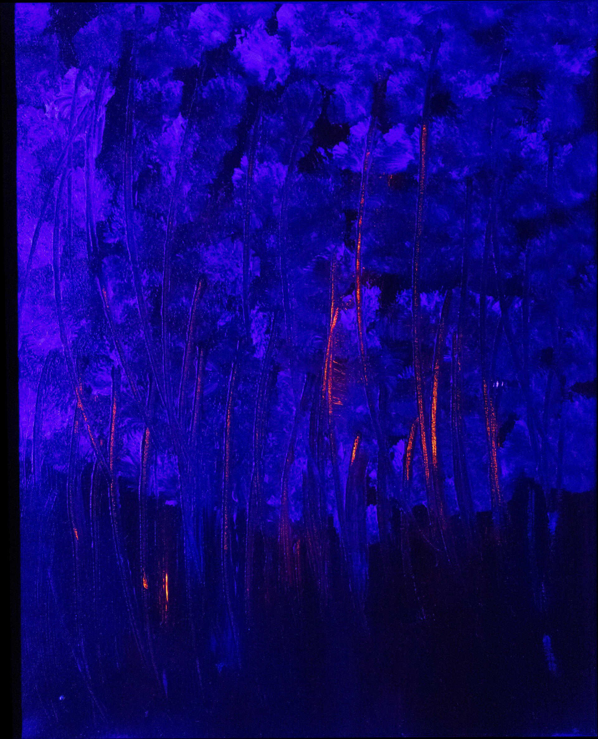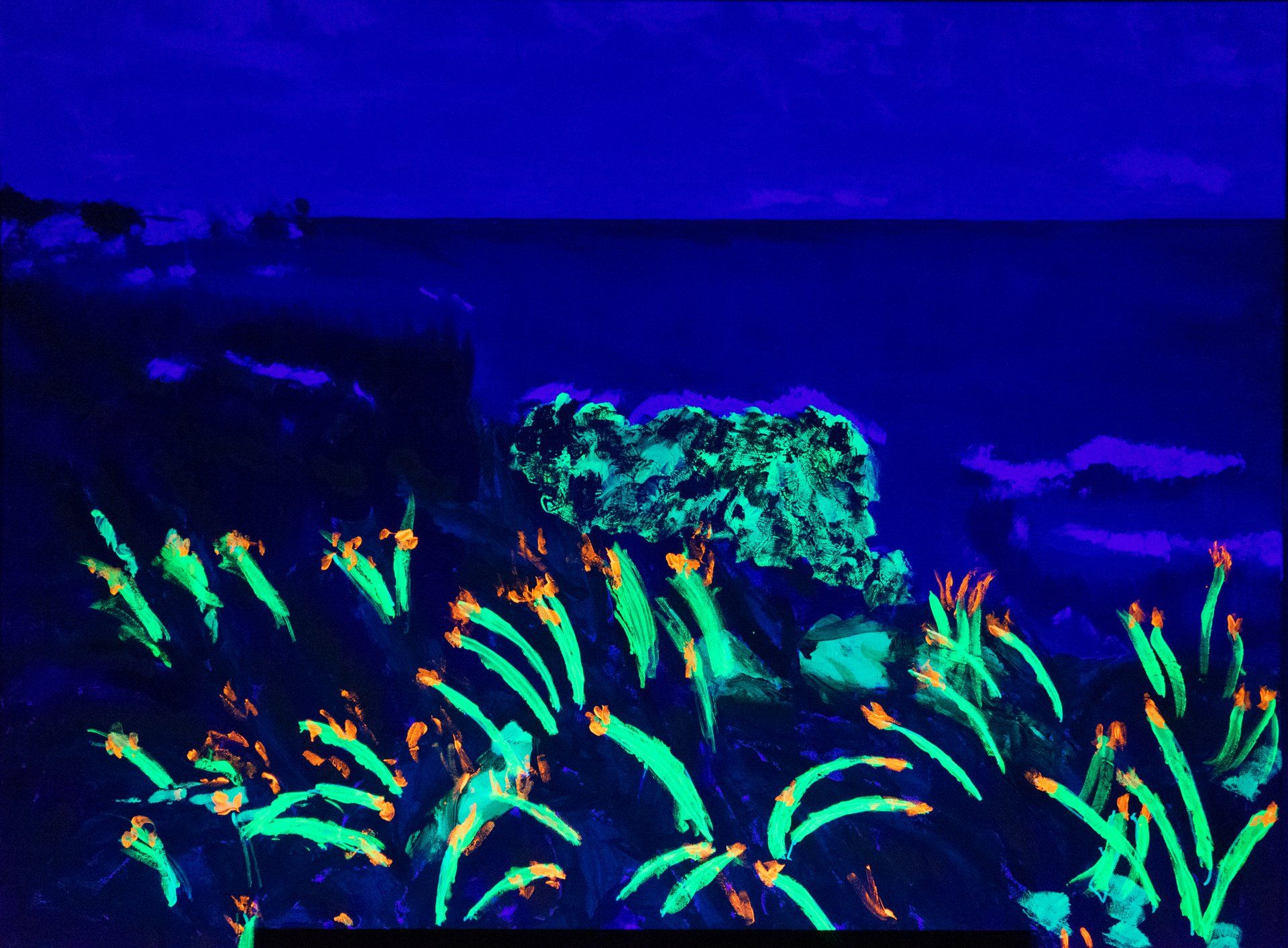 Seine Maltechnik wählt er dem eigenen Eindruck des Motivs entsprechend einmal fast pointilistisch, wie in den Darstellungen seines Bergener Gartens, oder er reiht verschiedenfarbige Streifen zu phantasievollen Meerespanoramen aneinander.