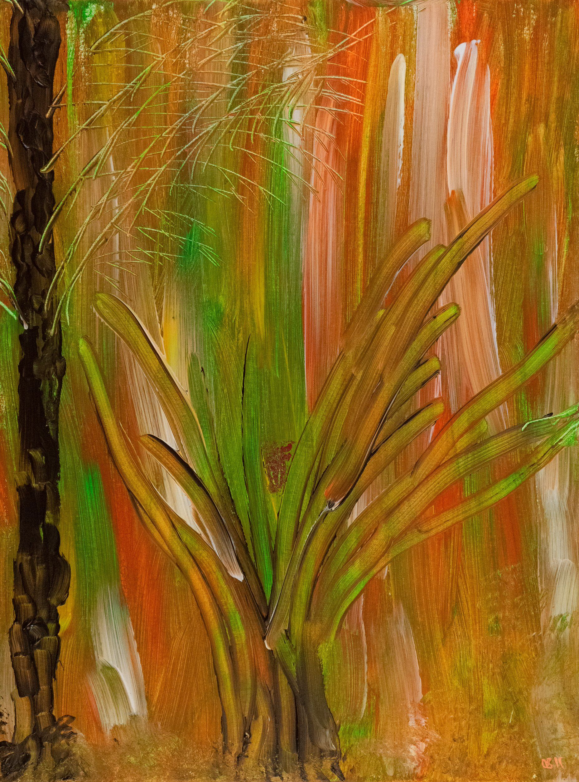 Seine Maltechnik wählt er dem eigenen Eindruck des Motivs entsprechend einmal fast pointilistisch, wie in den Darstellungen seines Bergener Gartens, oder er reiht verschiedenfarbige Streifen zu phantasievollen Meerespanoramen aneinander.